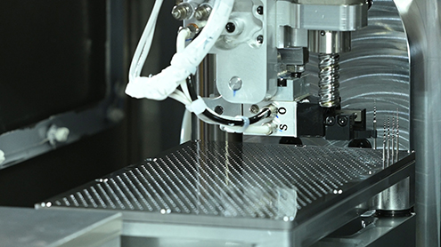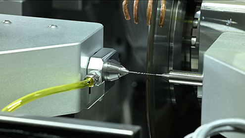 Imported grinding wheels are used, and they are dressed into the correct shape with a grinding wheel dresser. The dimensions after dressing are precisely measured with a tool setter (achieving an accuracy of 0.002mm), and this enables long-term stable high-precision processing.